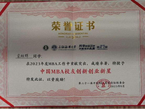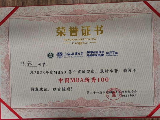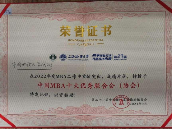 澳门电子专硕联合会喜获“2022年度中国MBA十大优秀联合会”荣誉称号,MBA2018级学生栾相辉获评“中国MBA校友创新创业新星”称号;MBA2021级、地大MBA帆船协会会长周佩佳获评“2022年度中国MBA新秀100”称号;MBA2023级班长陈强获评“2023年度中国MBA新秀100”称号。