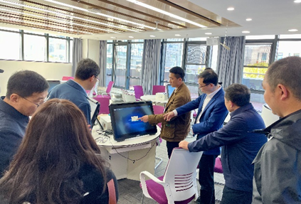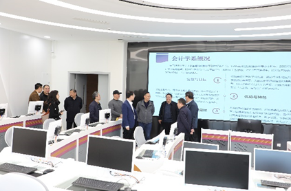 党委书记杨昌锐等院领导带领王春超院长一行参观了澳门电子金融实验室、云共享财务实验室、智慧教室、数字化档案室和活动室,双方围绕大数据、云计算、VR等新技术在党建、教学中的融合进行了交流探讨。