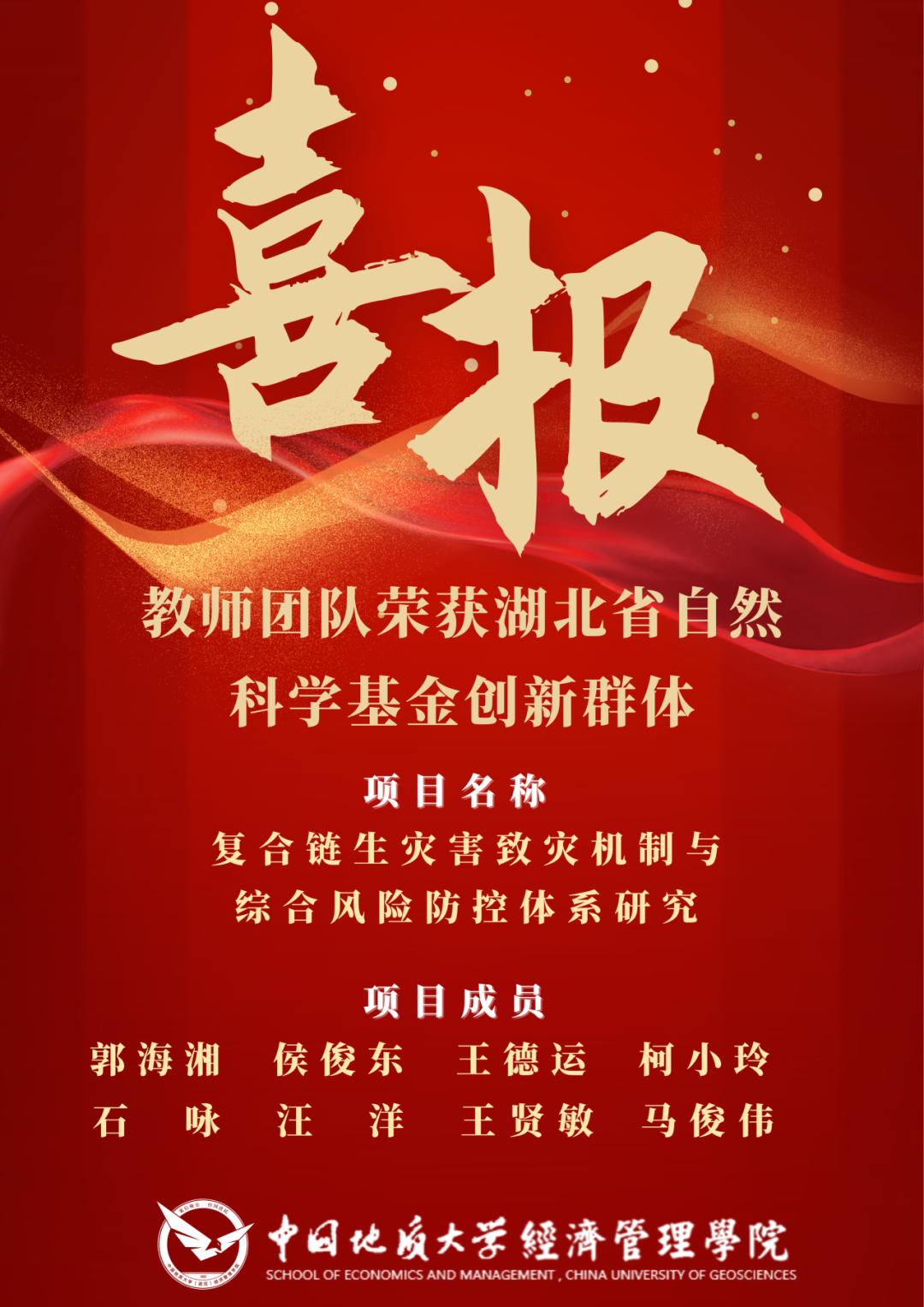 近日,湖北省自然科学基金获批名单公布,以澳门电子郭海湘教授、侯俊东教授、王德运副教授、柯小玲副教授、石咏特任教授为核心的科研团队,协同工程学院汪洋教授、地球物理与空间信息学院王贤敏教授、湖北巴东地质灾害国家野外科学观测研究站马俊伟副研究员,共同申请的“复合链生灾害致灾机制与综合风险防控体系研究”,荣获湖北省自然科学基金创新群体项目支持,该群体项目是学校培育支持的复合链生灾害风险决策与应急管理交叉团队的重要成果,也是近年来学院获得的首个交叉学科湖北省自然科学基金创新群体项目。