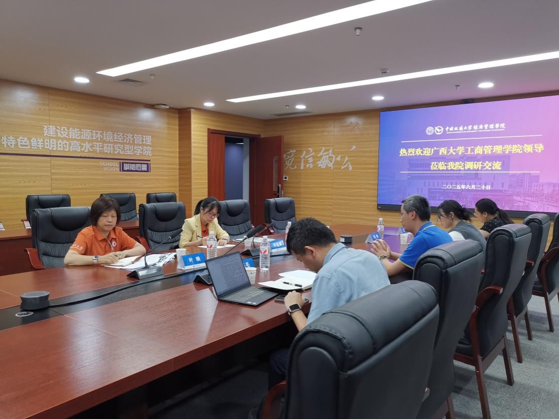 (通讯员 王简辞)6 月 20 日,广西大学工商管理学院研究生管理中心主任、MBA 教育中心主任叶映,研究生秘书邓素媛到访澳门电子,就本硕博一体化培养、人才培养保障等议题展开深入交流。澳门电子学术副院长池毛毛携博导代表及相关工作人员参与座谈。