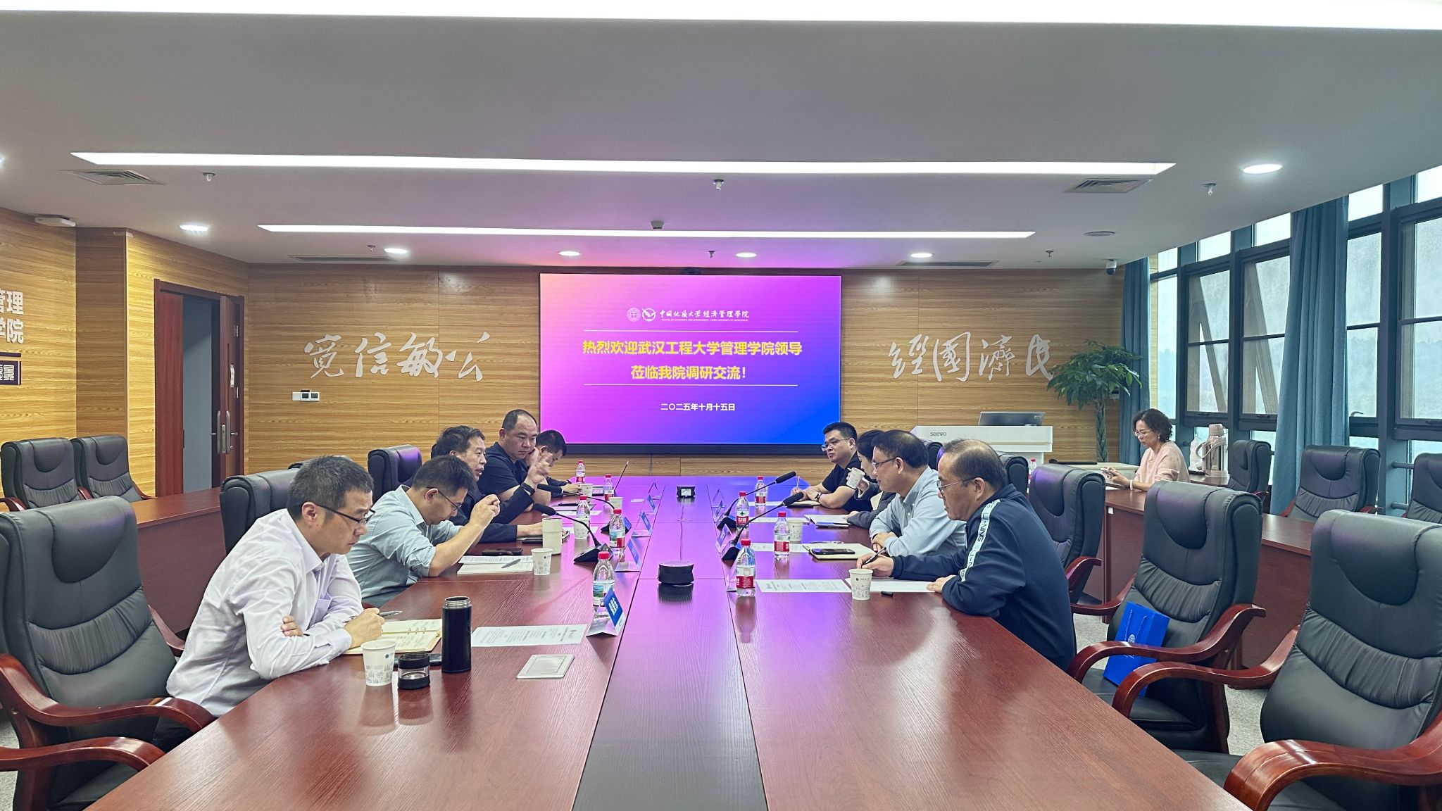 杨昌锐书记介绍了澳门电子在党建引领、实验室建设及人才培养模式创新方面的探索与成效。於世为院长重点分享了学院近年来在年终绩效分配改革方面的探索与成效,详细介绍了学院如何通过科学合理的绩效评价体系,激发教师教学科研积极性。闫华飞院长介绍了武汉工程大学管理学院在绩效改革、青年教师激励及案例教学方面的经验做法。双方还就本科人才培养方案优化、专业硕士培养管理、案例开发激励等议题进行了深入交流。