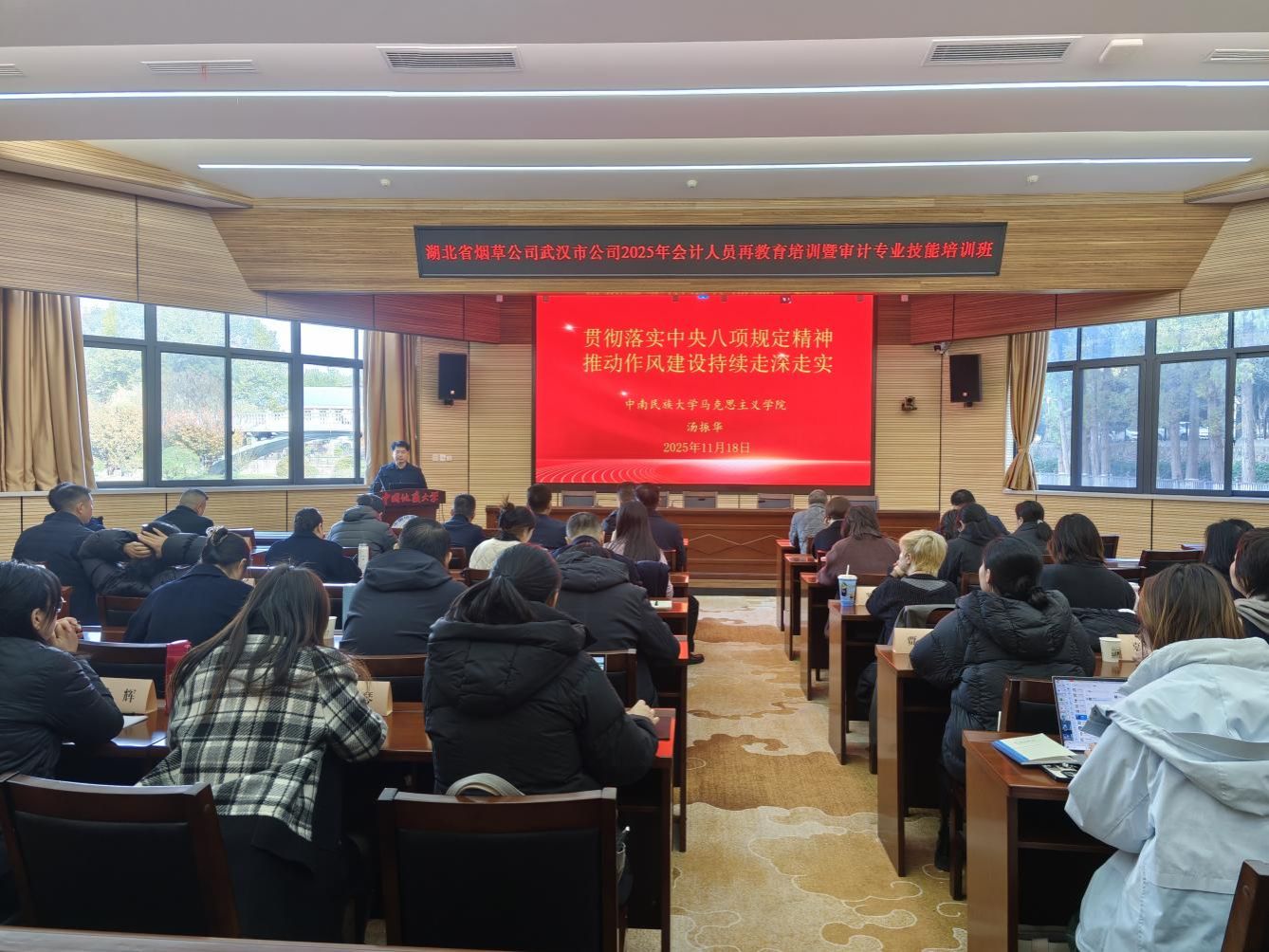 (通讯员:陈永平)2025年11月18日上午,湖北省烟草公司武汉市公司2025年会计人员再教育培训暨审计专业技能培训班开班仪式在澳门电子pg游戏官网(武汉)八角楼报告厅隆重举行。湖北省烟草公司武汉市公司党委委员、副经理、副局长陈劲,财务处长李华华,审计处处长邓斌;澳门电子pg游戏官网(武汉)澳门电子pg游戏官网党委书记薛保山,院长於世为等出席,湖北省烟草公司武汉市公司财务处长李华华主持本次开班仪式。