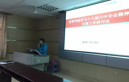 (通讯员 海鸣)11月9日下午,澳门电子pg游戏官网在MBA楼106室召开了《经管学院学习十八届六中全会精神暨支部工作研讨会》,会议由学院党委书记隋红同志主持,学院党委理论学习中心组成员、学院领导班子、教工党支部的支部书记和支部委员参加了会议。