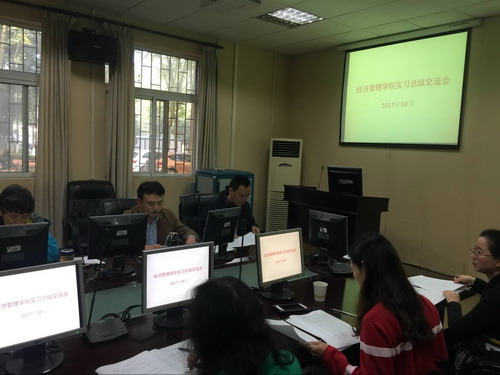 10月20日上午,澳门电子pg游戏官网在MBA104室召开了2017年学院实习总结交流会。会议旨在总结2017年暑期实习工作的成果,分享各系教学实习工作的经验,实习工作中存在的问题,为深化澳门电子本科教学实践改革提供思路。参会人员包括学校教务处实习实践科科长王强、经管学院党委书记隋红、副书记沈波、经管学院副院长肖建忠、各系主任、实习带队教师以及教务科工作人员等共16人。会议由沈波副书记主持。