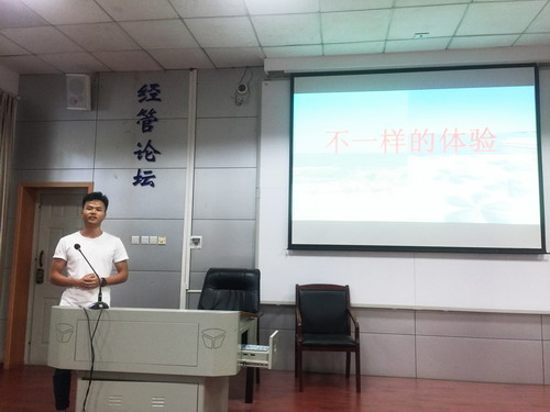 接下来的实习分享环节,丹霞山小分队的张雅倩和张静同学首先分享了她们在丹霞山地质博物馆的实习感受。日常的实习工作包括景区接待、辅助导游带队、学习丹霞地貌地质知识等,无论是知识还是技能方面都得到了明显的提高。同时明白了在工作中,勤勉做事、专注工作、提高与人沟通交流,快速融入工作圈子等都非常的重要。王一如同学分享了在温泉酒店实习的感受,酒店前台的工作没有想象中的那么简单,需谨慎细心,机智应对,同时又要勇于承担责任。王瑞泽同学分享了他在民宿实习中如何转变身份,与客人高效沟通的收获。