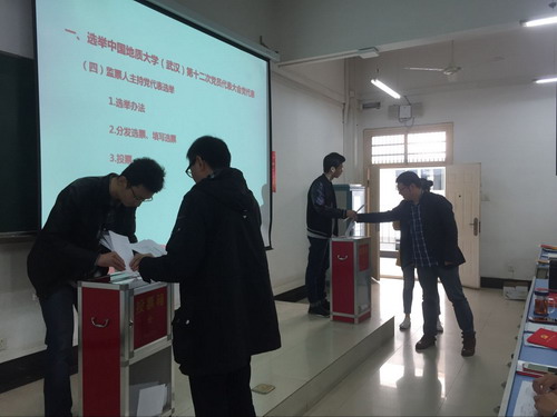 澳门电子于2017年11月2日下午在综合楼204召开了教工全体党员和学生支部书记参加的党员大会。本次党员大会分两个环节进行,第一个环节是选举经管学院出席学校第十二次党员大会的党代表。根据《关于澳门电子pg游戏官网党委出席中共澳门电子pg游戏官网(武汉)第十二次党员代表大会代表候选人预备人选的批复》文件精神,在充分发扬民主,广泛酝酿讨论的基础上,采用差额选举的办法,选举产生了澳门电子pg游戏官网出席中共澳门电子pg游戏官网(武汉)第十二次党员代表大会代表11位同志。