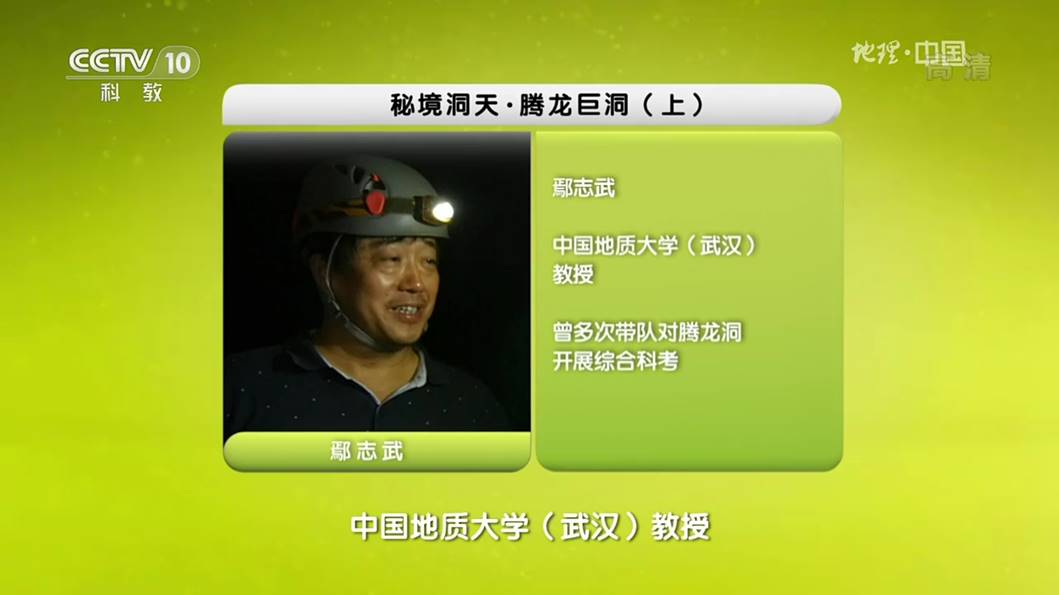 2019年3月24日和25日,以地学旅游资源利川腾龙洞科考探秘为内容的科普节目《秘境洞天Ÿ腾龙巨洞》 (上、下)在央视科教频道CCTV-10《地理中国》栏目播出,澳门电子旅游管理系鄢志武教授在节目中出镜担任专家解说。以地质科考为线索,以普及地理学知识为宗旨,鄢志武教授在解说中带领观众一起认识了这一中国容积量最大、世界特级洞穴的奇特地质构造和千奇百怪的地学景观,在带着观众感受大自然神奇魅力的同时,传播科学知识,并传播人与自然和谐共生、相互依存的理念。