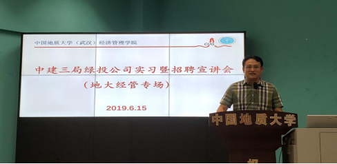 (通讯员:学生记者叶德兆)6月15日上午9:30,中建三局绿投公司实习暨招聘宣讲会在北一楼报告厅举行。中建三局绿投公司合约法务部负责人胡谋东,人力资源部副总监梅伟,澳门电子2017级毕业生喻宏一行来校开展地大经管学院专场实习暨招聘宣讲活动。学院党委副书记沈波,管理科学与工程系主任王广民,系党支部书记孙涵,管科系宫培松、丁丽萍、张先锋、冯忠磊、程欣等老师出席了活动。