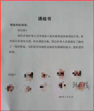 图:李钰涵同学母亲的“请战书”