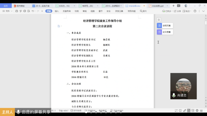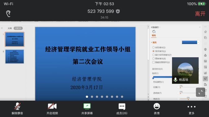 为落实各级各项就业政策,推进《澳门电子pg游戏官网全员促进就业工作实施方案》的实施,促进本届毕业生“顺利毕业、尽快就业”,学院就业工作领导小组于2020年3月17日14:00召开扩大会议,这也是领导小组的第二次线上会议。院党委书记杨昌锐、院长杨树旺、院党委副书记沈波、副院长肖建忠、教务科科长石磊、学院各系主任、2016级本科生班级班主任出席会议,会议由辅导员田昆主持。