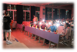 为成功开展活动,同学们在新成立的班团委的带领下,从活动策划、电子邀请函制作、晚会用品购置到活动节目征集、游戏环节设置、板报设计与绘画、活动主持及节目串词准备等各个环节作了精心准备。在活动准备中,全班同学各尽所能,踊跃承担,积极参与,分工行动而又共同合作。晚会活动中,同学们积极展示才艺和表现自我,用齐唱、二重唱、合唱呼应彼此,用热舞奔放青春,在单口相声中会心欢笑,在游戏中小露呆懵和机智。