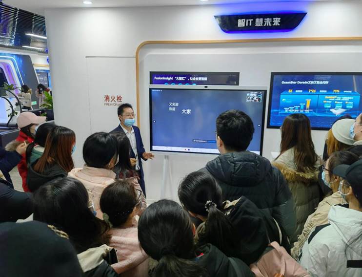 接着,在物联网展厅,讲解员给大家介绍了物联网云平台、智慧社区、智慧资产、能耗监测等物联网云平台的发展历程和电信要客灾备中心武汉基地,包括云灾备平台、业务连续性平台和云迁移等,使同学们认识到了信息安全的重要性。