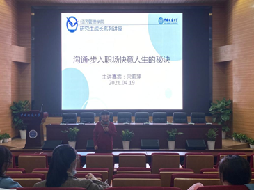[通讯员 王简辞 刘伟 ] 2021年4月19日晚上7点到9点,聚焦研究生成长与发展,澳门电子pg游戏官网“研究生成长”系列讲座在我校未来城校区经管大楼二楼报告厅正式开讲。本次讲座的主题是:“沟通:步入职场快意人生的秘诀”。本次讲座邀请到了该院宋莉萍副教授主讲,吸引了不少研究生同学参加了此次讲座。