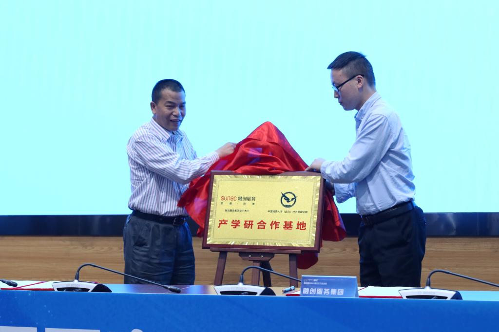 杨树旺与张健伟为“产学研合作基地揭牌”揭牌。
