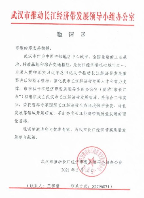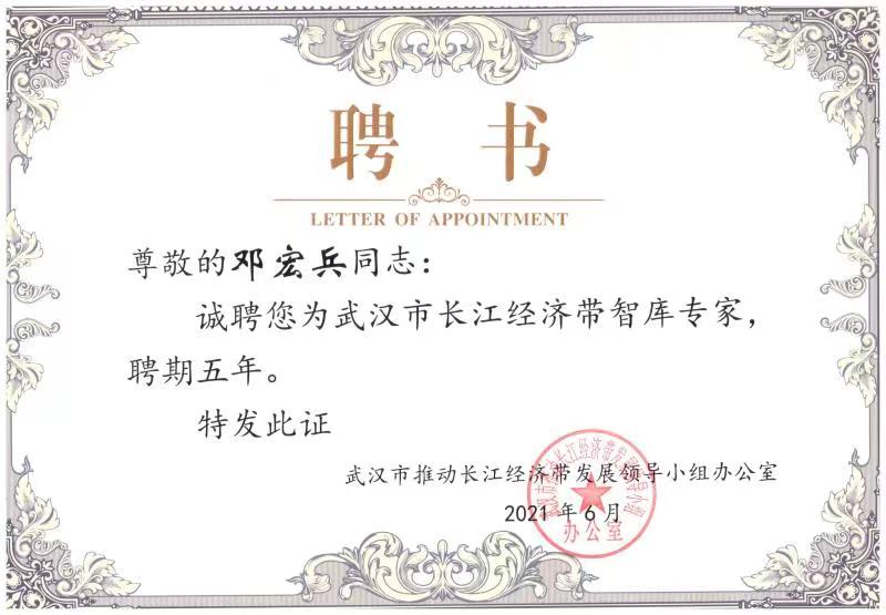 (通讯员王彦闻)近日,澳门电子国贸系邓宏兵教授被武汉市推动长江经济带发展领导小组办公室聘为武汉市长江经济带智库专家,聘期五年。