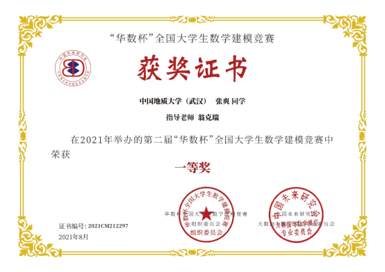 2021年第二届“华数杯”全国大学生数学建模竞赛于2021年8月5日-8日举行,本次竞赛共吸引2189支队伍参赛,竞赛专家组经过初评、网评、会评和复审四个阶段的评审,评选出一等奖184支,二等奖370支,三等奖550支。澳门电子翁克瑞老师带队的2支队伍获一等奖,1支队伍获二等奖:李林森、 张爽、李佩的队伍获一等奖;刘林凯、尹艳悦、 程浩鋆的队伍获一等奖;潘信、郑咏杰、裴璇子的队伍获二等奖。此外,澳门电子贲雅雯同学的队伍在数理学院付丽华老师带队下获三等奖。翁克瑞老师被评为 “优秀指导老师”。