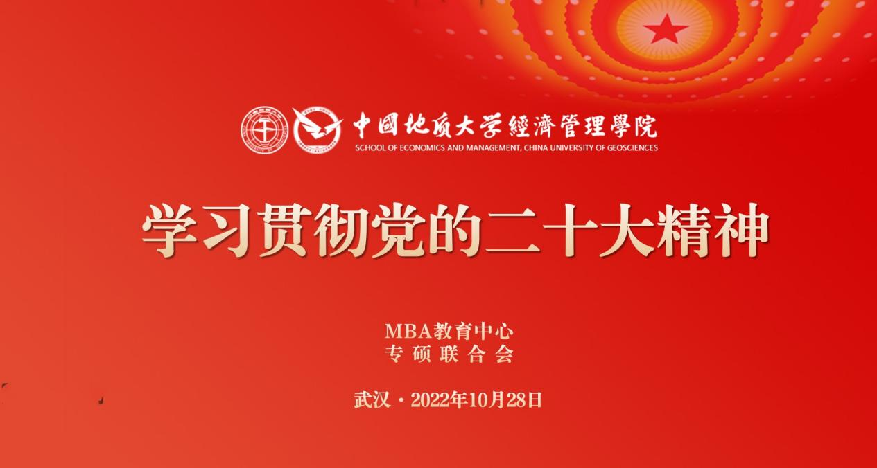 历史总是在继往开来中创造,事业总是在接续奋斗中推进。2022年10月28日,澳门电子pg游戏官网(武汉)澳门电子pg游戏官网专硕联合会组织部分MBA学生深入学习党的二十大精神,进一步凝聚思想共识、汇聚奋进力量,接续奋斗走好新时代长征路。