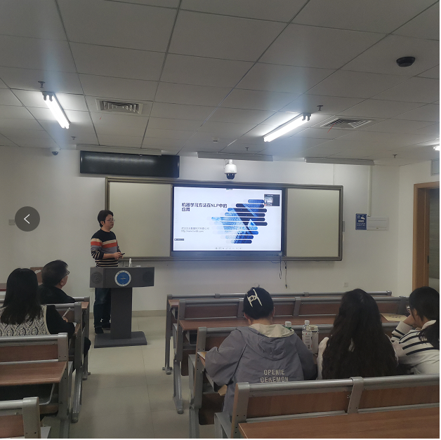 随后,聂老师基于多个具体案例,通过客户背景、客户需求、技术组合和技术准确性、可行性等多方面的分析,让同学们更加深刻地认识到自然语言处理在各个不同方面的应用,并向同学们展示了汉王技术团队多年来在各类竞赛和科研项目中取得的研究成果。讲座结束后,聂老师就师生们在自然语言处理中关心的问题进行了解答。