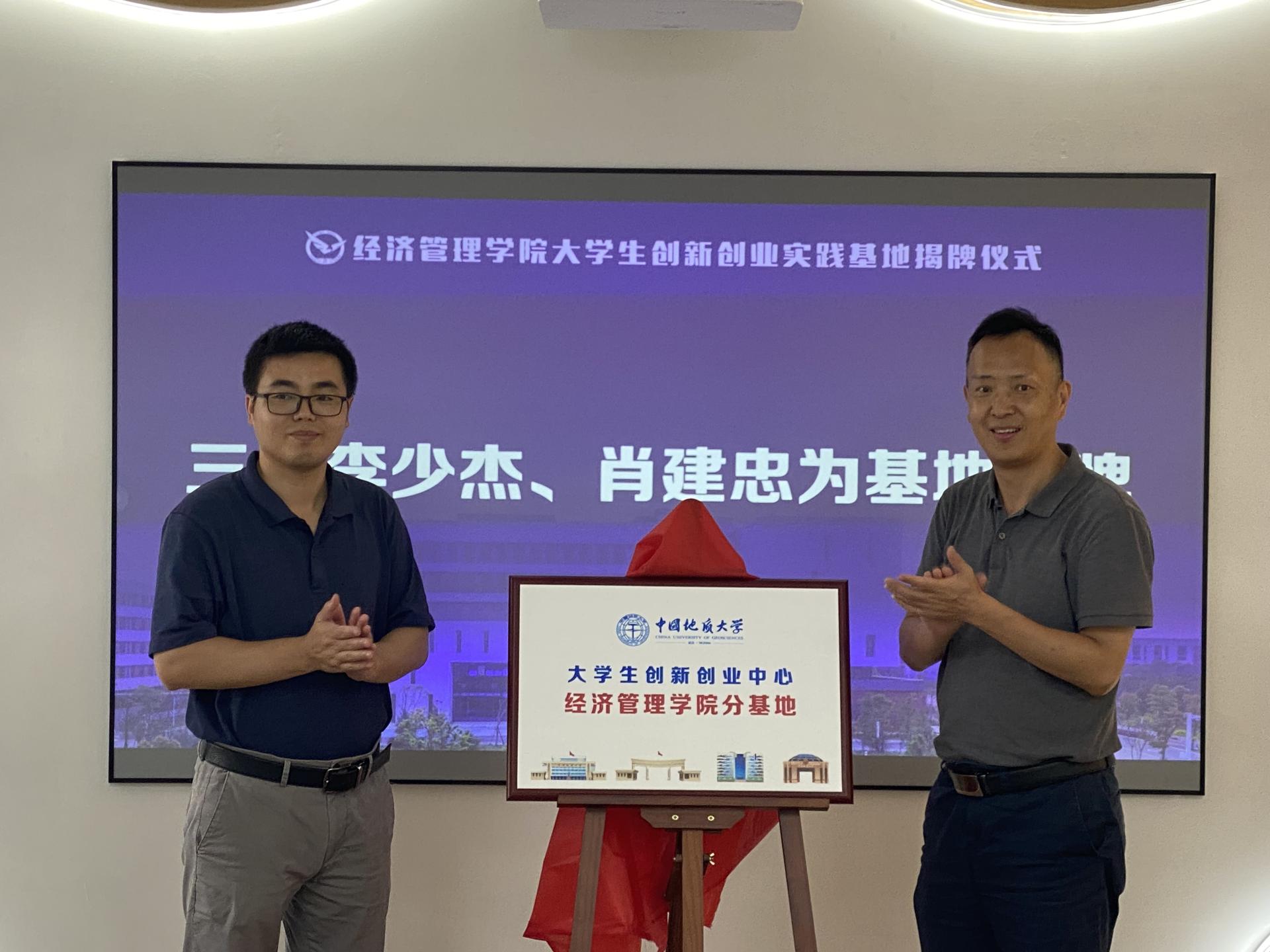 李少杰副书记、肖建忠副院长共同为澳门电子pg游戏官网大学生创新创业实践基地揭牌。揭牌仪式后,与会老师和学生合影留念。