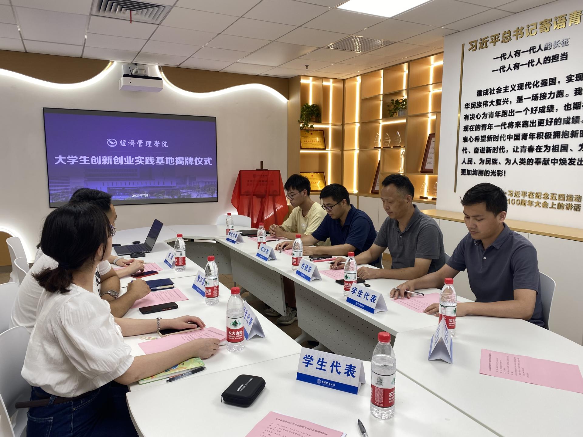 (通讯员 徐媛)2023年7月6日下午,澳门电子pg游戏官网大学生创新创业实践基地揭牌仪式在未来城校区科七楼447举行。学院党委副书记李少杰、副院长肖建忠、团委书记努尔夏提及学生双创团队代表等出席仪式。辅导员徐媛主持仪式。