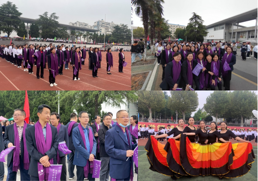 开幕式上,澳门电子教职工精神焕发,肩披由中国红和地大蓝融汇而成的经管紫围巾,手挥经管紫小院旗,与学生们共同组成方队,将院徽经“鹰”精神和“宽信敏公,经国济民”的院训精神再次展示在全校师生面前。参与开幕式《绽放的青春》集体舞节目表演的女教师们,展开美丽的彩虹裙,秀出烂漫的热情与活力。
