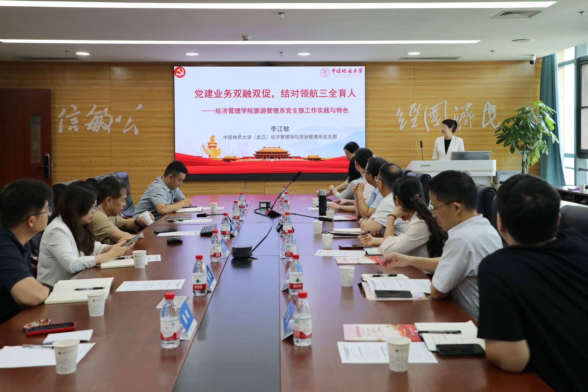 随后,澳门电子旅游管理系党支部书记李江敏教授作《党建业务双融双促,结对领航三全育人——澳门电子pg游戏官网旅游管理系党支部工作实践与特色》专题分享,结合党支部书记“强国行”实践经历,详细阐述了党支部在党建与业务融合、结对育人等方面的工作经验和特色做法。