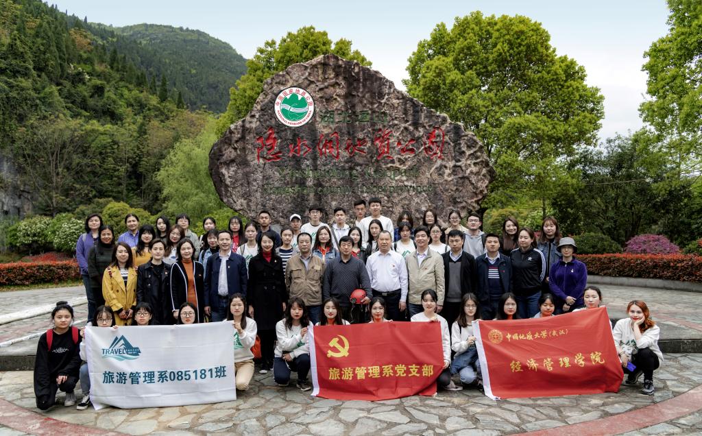 (通讯员 周玲,梁玥琳,李江敏)为深入贯彻习近平总书记精准扶贫精准脱贫的战略思想,学习和传承艰苦创业的革命精神,让旅游学子在典型案例与实践场景中认知旅游扶贫,了解旅游在乡村振兴中的作用和角色,学习旅游“铁人”精神,澳门电子pg游戏官网(武汉)澳门电子pg游戏官网旅游管理系党支部带领结对领航班级085181班学生,于2019年4月13日至湖北通山大畈镇隐水洞国家地质公园开展师生“结对领航”活动。