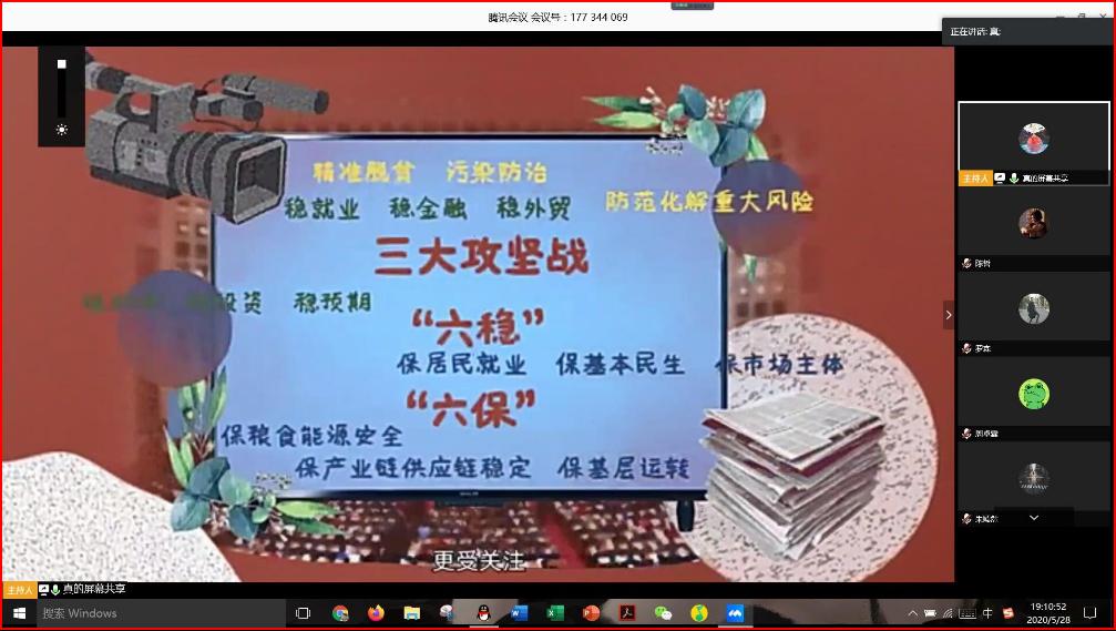 2020年5月21日和5月22日备受瞩目第十三届全国人大三次会议和全国政协第十三届三次会议在北京隆重召开。在两会召开之际,澳门电子pg游戏官网全体学生党支部积极响应党和国家的号召,采用线上会议开展“聚焦全国两会,凝聚决战决胜的中国信心”主题党日活动,各支部党员就两会热点问题各抒己见,交流讨论。
