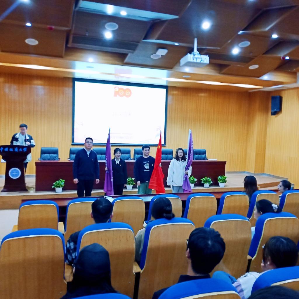与会学生党员代表、学生班团代表以及党团校学员代表接受学院授旗,并合影留念。