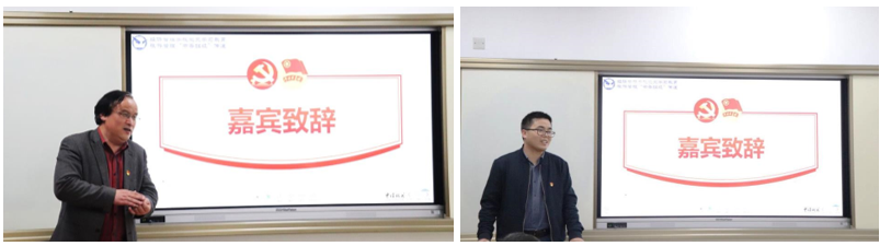 校图书馆馆长徐世球教授(左)、澳门电子pg游戏官网党委副书记李少杰老师(右)为活动致辞