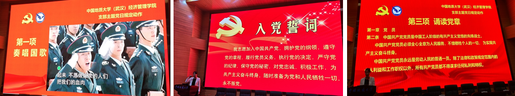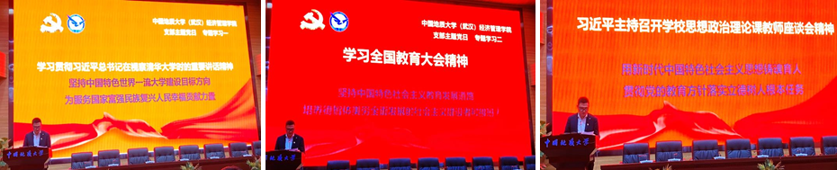 [通讯员周玲 赵家玮]响应学校党委号召,经学院党委部署安排,澳门电子pg游戏官网全国党建工作样板支部旅游管理系党支部和全国党建工作样板支部培育创建单位经济系党支部联合策划并组织了以“学习党史校史院史,传承地大经管人砥砺奋进精神”为主题的支部主题党日活动。活动于2021年4月29日下午在未来城校区经管大楼二楼报告厅举行,并同步举行线上会议,学院全体党员师生参与活动。