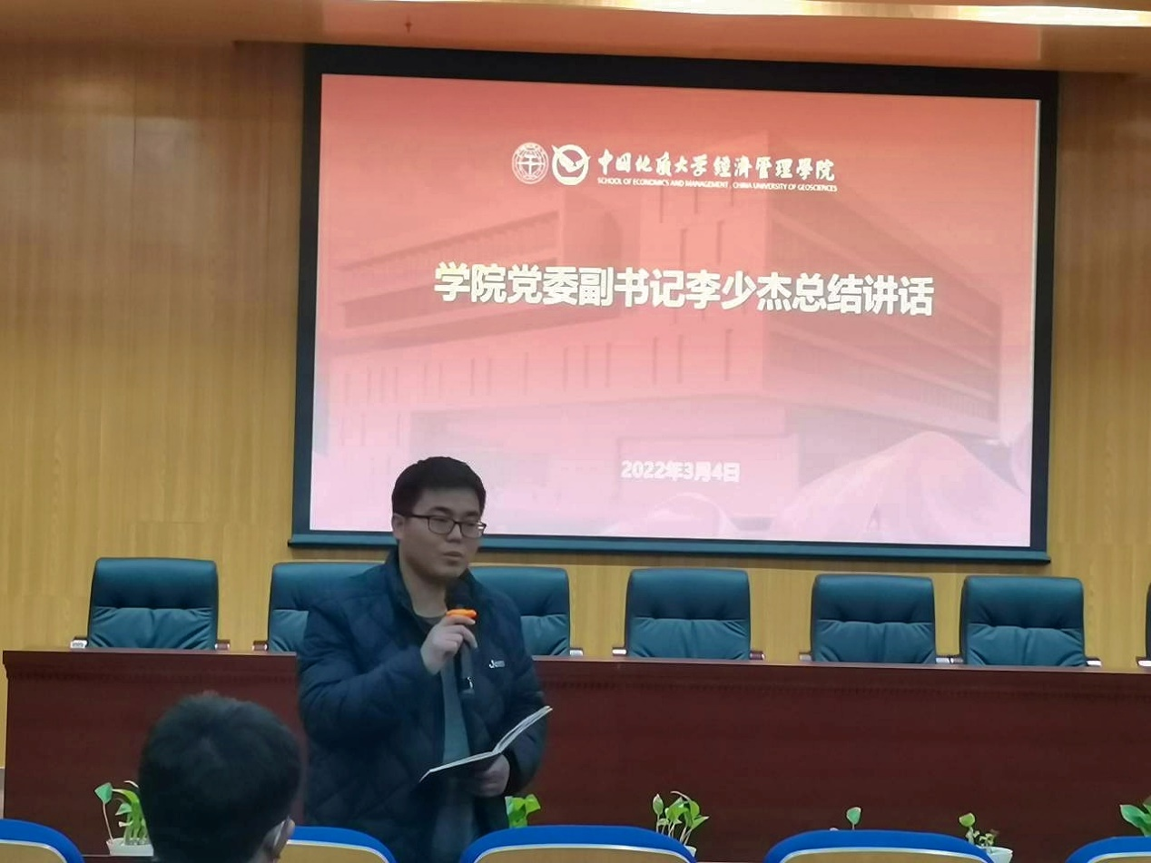 会上,各支部书记结合本研学生党支部工作特点,围绕党支部标准化、规范化建设、党支部特色工作培育、支部战斗堡垒和党员先锋模范作用发挥四个方面详细汇报支部落实“七个有力”情况,并着重查摆党支部工作存在的不足,提出了切实的改进方法。其中,经济学专业本科生党支部作为校级样板党支部培育对象,致力于落实“严在地大校风学风”,将“严在经济”贯穿支部建设和党员教育管理,形成以理想庄严、制度严密、学风严谨的支部工作特色。营销旅管专业本科生党支部则以师生联动、课程思政建设、党班团一体发展作为工作重点,充分结合学科专业特色,形成有效的实践育人机制。