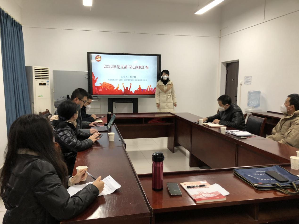 (通讯员 海鸣)为深入学习贯彻党的二十大精神,贯彻落实习近平总书记关于湖北工作的重要讲话和指示批示精神,落实上级关于做好党组织书记抓基层党建工作述职评议考核工作的有关要求,提升基层党组织力,推动基层党建工作高质量发展,2023年1月5日上午,澳门电子pg游戏官网2022年度教工党支部书记抓基层党建工作述职大会在南望山校区MBA415如期举行。学院党委书记杨昌锐同志、院长杨树旺同志、副书记李少杰同志和各教工党支部书记参加此次会议。