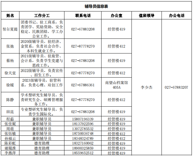 值班工作要求:1.走访宿舍,抽查学生夜间在校和宿舍安全文明情况,了解学生生活状态;2.走入教室、图书馆、自习室,了解学生学习状态;3.组织和参与学生活动,检查早操、论坛等出勤情况;4.开展谈心谈话,关注学生健康成长,帮助解决实际困难;5.学院领导检查组不定期抽查值班情况,切实压实值班责任。 澳门电子pg游戏官网学工组 2023年10月7日