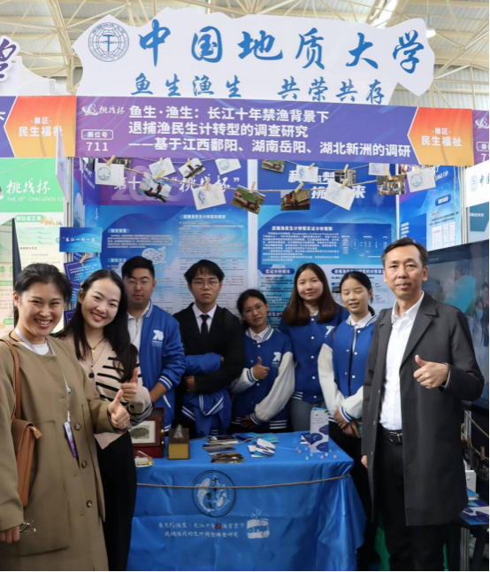 项目简介:“江研境学”团队是一支由跨学科、跨专业的14名本科生组成的长江保护小分队。团队成员们梳理长江十年禁渔计划的实施背景及相关政策,选取江西鄱阳、湖南岳阳、湖北新洲等三个典型代表区域,通过文献研究、访谈调查、问卷调查等方式,以SLA实证分析框架对禁渔计划的执行和退捕渔民生计转型进行调查研究。经过深入剖析,他们还提出多条政策建议,为帮助退捕渔民实现高质量生计转型提供参考依据,作品得到农业农村部长江流域渔政监督管理办公室等相关政府部门、研究机构及企业的肯定与采纳。