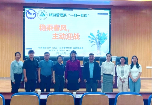 (通讯员:文/黄珂、田林 图/李千惠、刘佳娣)2024年4月22日14点,澳门电子pg游戏官网旅游管理系在未来城校区经管楼一楼报告厅举行了以“稳乘春风,主动迎战”为主题的“一月一系谈”活动。意在坚定学生的专业信念,搭建多渠道校企合作桥梁。特别邀请上海亚湾酒店管理有限公司、华住集团、湖北天屿湖生态文旅有限公司的领导嘉宾。学院学生工作组蔡杨老师、旅游管理系教师、旅游管理专业2020、2021、2022级学生参加了会议。
