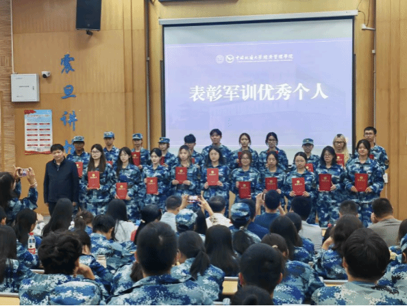 大会对军训期间表现优异的个人进行了表彰。副院长肖建忠、王广民为“军训优秀个人”颁发荣誉证书。在为期两周的军事训练中,男生军体拳虎虎生风,女生匕首操英姿飒爽,展现了澳门电子pg游戏官网2025级新生的良好精神风貌。