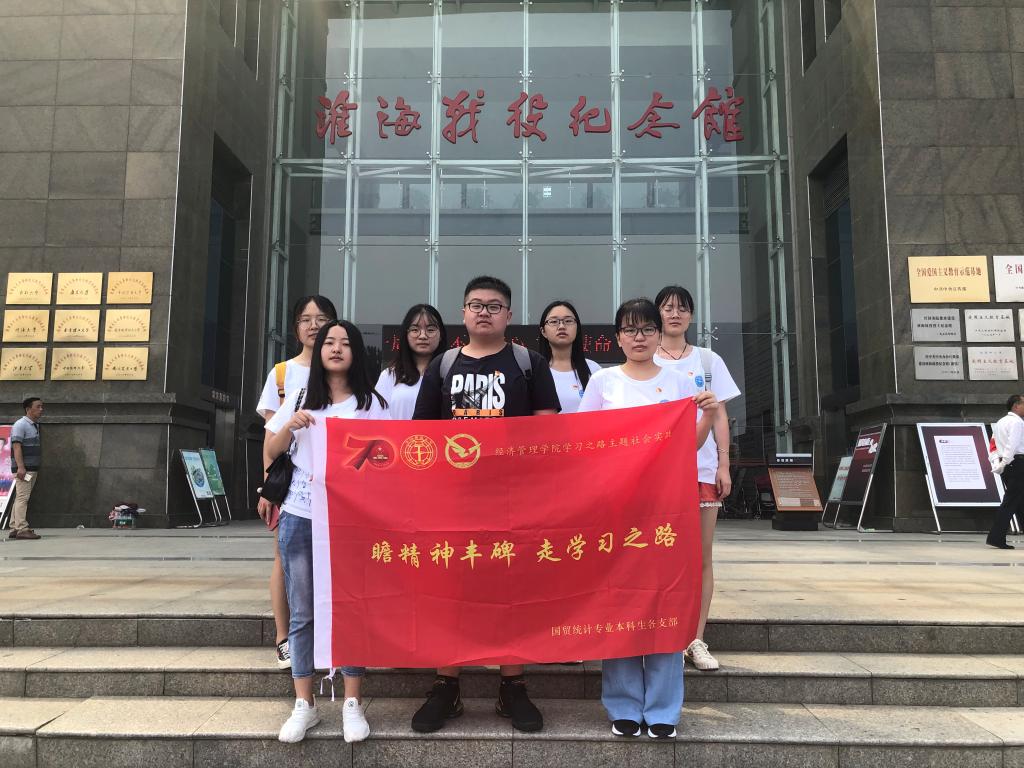 2019年,是新中国成立70周年,是中国共产党成立98周年,为深入贯彻习近平新时代中国特色社会主义思想,引导培养党支部成员重走革命之路,教育党员不忘初心、牢记使命,澳门电子pg游戏官网组建“寻宝经兵”社会实践团,开展学习之路暑期社会实践活动。学院国贸统计党支部组成“擎淮”分队,赴徐州开展活动。