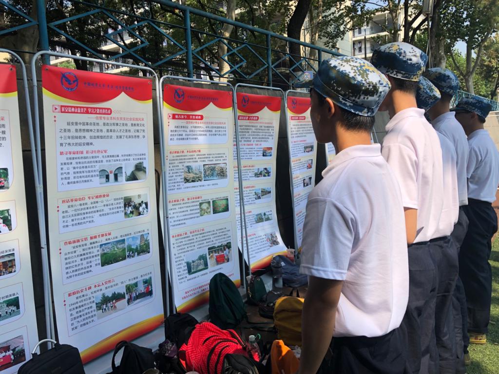 军训是大学生入学的第一课,而革命教育是大学生必不可少的精神课程。将军训与革命教育相结合,打出了军训加红色教育的组合拳。革命传统教育主题社会实践风采的展出,吸引了新生的目光,让新生在训练之余目睹了各优秀党支部的风采,引领新生在训练磨砺的过程中激发奋进新时代的精气神,教育学院青年学子行程万里,不忘初心,知古鉴今,爱国强军,在军训的磨练中增强体魄,在红色教育中坚守初心使命,勇担复兴中国梦。