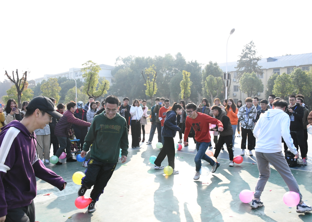 2019年12月7日上午,澳门电子pg游戏官网阳光心理运动会在北区操场成功举行。来自学院17-19级的150余位学生报名组成了6支团队参与了本次活动。本次活动以“经彩运动,你我同行”为主题,设置了“不要触地” “踩气球” “铁人五项”“扔沙包”“趣味篮球赛”等比赛项目。运动会以团体活动的形式开展,将传统体育的竞技比赛和趣味活动相融合,集趣味性、教育性、运动性于一体,旨在让学生们在游戏中团结合作、释放压力、收获快乐。