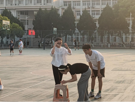 第四项:蒙眼互打。这个项目人气爆棚,活动现场瞬间成了武林高手过招现场,听声辩位,左突右刺,围观的同学们不时爆发出一阵阵笑声。
