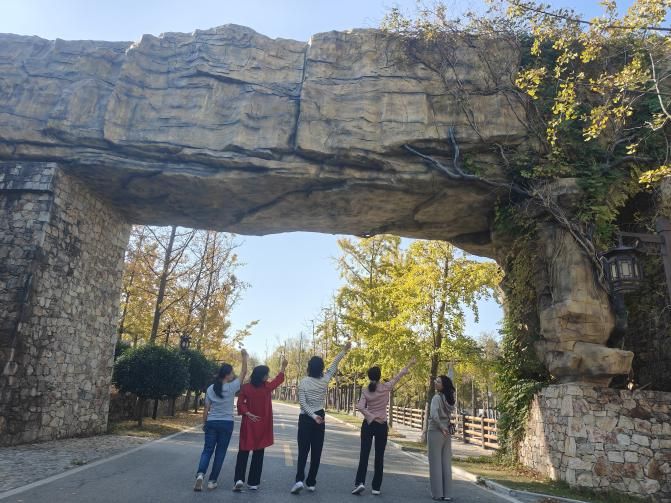 徜徉在斑斓的秋色中,卸下工作中的紧张与疲惫,大家尽情享受难得的秋日休闲时光。大家或在草坪上舒筋抻骨,或乘一架秋千,尽享午后秋阳轻抚的慵懒闲适;或在盛放着黄的、红的、粉的、白的各色玫瑰的花园内流连忘返,在争奇斗艳的花丛中合影留念,记录美好秋光。