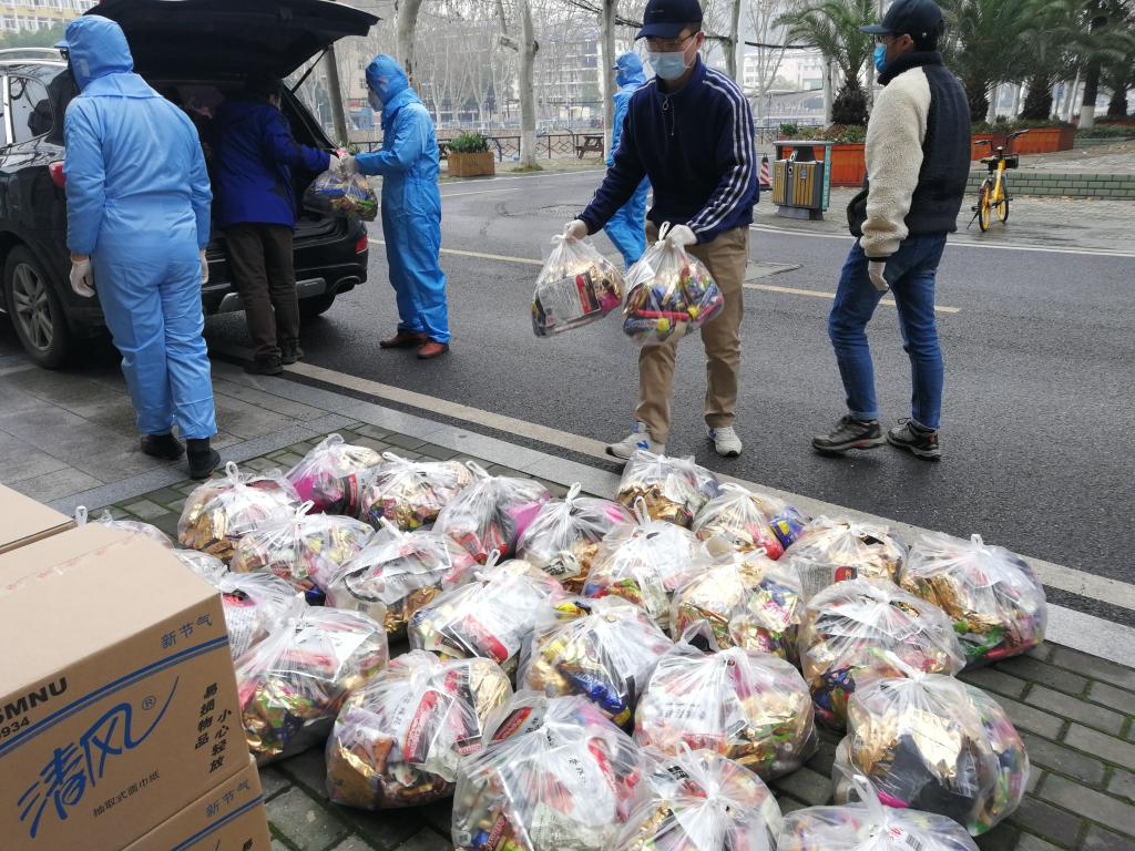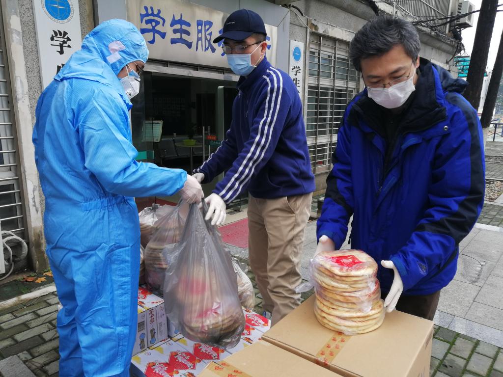 在武汉封城、物资难寻等重重困难中,我校澳门电子pg游戏官网迪力木拉提•亚力坤等4位新疆籍同学远在家乡,在老师、同学和校友们的共同努力下,为期5天内,联系到3家供货商的馕、牛奶、烤鸡腿、香肠、方便面、干果、抽纸巾等12种硬核援助物资,全部提供给了我校学生工作处,并委托学工处将物资分发给留校的同学们。26日下午,物资抵达学校,经学工处、保卫处和经管学院的老师们前期协调和有力组织下,留校学生临时党支部的同学积极配合,有序将物资分发到了每一位留校同学的手中。